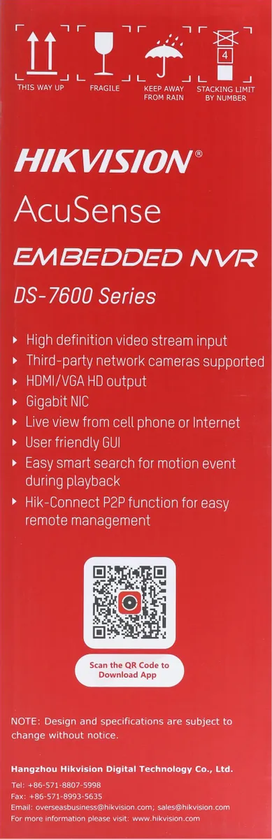 16-ти канальный IP-видеорегистратор с PoE и технологией AcuSense Видеовход: 16 каналов; аудиовход: двустороннее аудио 1 канал RCA; видеовыход: 1 VGA до 1080p, 1 HDMI до 4К; аудиовыход: 1 канала RCA. Входящий поток 160Мб/с; исходящий поток 160Мб/с; разрешение записи до 12Мп; синхр.воспр. 12 каналов@2Мп; 2 SATA для HDD, до 10Тб каждый диск; тревожные вход/выход 4/1; 16 RJ45 10M/100M Ethernet PoE интерфейсов (<200Вт); 1 RJ45 10M/100M/1000M Ethernet; 2 USB; -10°C…+55°C; АC100-240В; 15Вт макс (без HDD), ≤3 кг (без HDD). Видеоаналитика: Обнаружение и захват лиц на 1 канале, сравнение лиц на 4 каналах, поиск по изображению лица,16 библиотек лиц; обнаружение движения 2.0 на 16 каналах; защита периметра на 2 каналах.